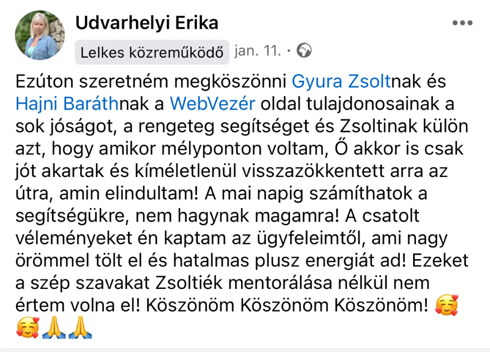 Több, mint 10 éve dolgozom Online – a munkám célja mindig az volt, hogy segíteni tudjak azoknak, akikkel dolgozom.